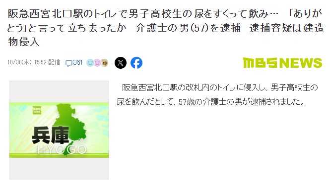 近日,在日本兵库县阪急西宫北口站一男厕所内,一名 57 岁的男性护工,突然走向一名男高中生,而后将“圣水”一饮而尽,并道了一声“谢谢”。随后,受到惊吓的少年立即拨打了报警电话,后经监控锁定了该男子。10 月 29 日,兵库县有关方以“无正当理由入侵厕所”的罪名将这名男子逮捕,该男子对自己的非法行为供认不讳。首先,这起事件最引人注目的,莫过于其罪名 —— “无正当理由入侵厕所”,日本有关方最终选用此罪名,就像是一种“技术性”的妥协。因为在日本,此事件无法直接以“伤害”、“侵犯”等罪名立案,该男子的行为没有对高中生造成肉体伤害,且其过程短暂、平和,甚至伴随着一句礼貌的“谢谢”,这与常规的非法行为大相径庭。 因此,“入侵厕所”这一指控,精准地抓住了该男子行为中“滥用”公共设施权限的那一刻,他将一个用于解决需求的私密空间,转变为了实现个人异常癖好的舞台。在日本,这种位于车站等人流密集区的厕所,尤其被视为是文明中“肮脏”与“洁净”被严格管理和区隔的象征,而该男子的行为,却彻底颠覆了这种区隔。他不仅没有规避“污秽”,反而主动寻求并消费了它,这一举动,在深层次上玷污了当地集体意识中对公共空间的想象,其冲击力远超一次简单的冒犯。首先要知道,这种液体是代谢后所排出来的废物,如果饮用,会迫使肾脏再次过滤这些废物,加重肾脏的负担,对肾脏造成危害。同时,如果饮用者身体存在感染,那么其中的细菌,便会被直接摄入,从而引发肠胃炎等消化道疾病。其次,一个 57 岁的成年人,一名承担着“护工”这一需要高度耐心与同理心职业的人,为何会在光天化日之下,在这样一个人来人往的公共空间,做出如此令人震惊的举动? 其实,该男子的行为,在相关心理学上,是被归类为一种相关欲望的倒错,我们无法探究其个人取向的形成原因,但是可以将它视为心理生态系统严重失衡的一个症状。当常规的环境联系、情感慰藉和成就感知无法获得时,那一个人可能会转向通过某些非常规的、甚至带有自我伤害倾向的行为,来寻求强烈的感官刺激或心理满足,从而填补内心的空洞与虚无。那句礼貌的“谢谢”,与骇人的行为形成了荒诞的对比,仿佛是他残存的社会人格在向那个被他惊吓的高中生,也向整个他无法融入的整体环境,所做的一次扭曲的告别。这起事件,是一起让人感到惊讶的奇闻,它挑战了我们的常识,同时也践踏了底线。然而,如果我们仅仅停留在猎奇、谴责或将当事人异化的层面,便会错过它最为沉重的警示意义。那名男子饮下的或许不只是“圣水”,更是他自身无法排解的孤独、绝望与在环境中的异化感。 这起离奇事件为公共场合的行为规范敲响了警钟,对每个人而言,既要学会保护自己,也要懂得约束自己。对有特殊喜好的人士而言,必须要清醒地认识到:任何个人行为一旦在公共空间实施,并损害了他人权益,便不再是私事,无论如何,不要将陌生人卷入自己的世界。对于我们每个人而言,如果遇到了此类行为,一定先要保持镇定,确保自身安全,然后再发起求助,切莫因尴尬或者困惑而选择隐忍。 |
