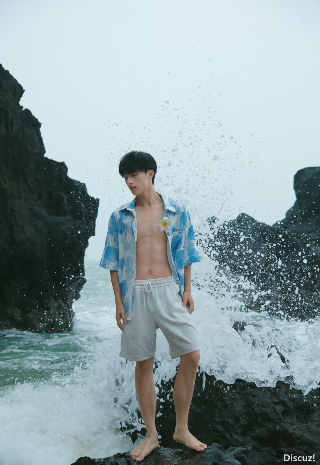 黑色礁石旁的少年